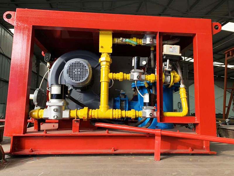 中間包烘烤器:包括燃燒器、鼓風機、助燃風管道系統和煤氣管道系統,所述助燃風管道系統一端連接鼓風機,另一端接入位于燃燒器前的煤氣管道系統,還包括通過控制煤氣管道閥門開閉自動調節(jié)溫度的控制系統,所述燃燒器為1-5個(根據膜胎尺寸確定),中間包工作層受熱均勻,易脫模節(jié)能效果明顯。