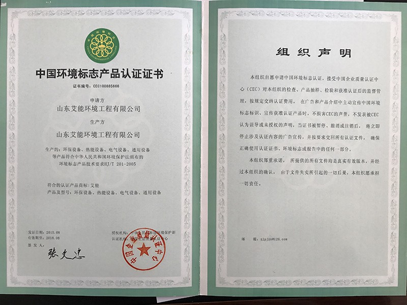 環(huán)保標(biāo)志認(rèn)證證書